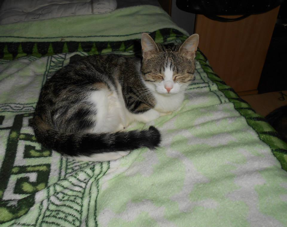 Slečna Drobečková se našla loni na konci léta, je to mladá kočička, která se mazlí jen když ona chce, ale pak to stojí za to. Nejraději má váleníčko na posteli.