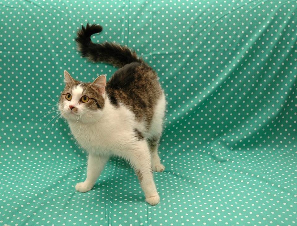 Mufínek je jedno ze zachráněných koťátek před utopením. Jsou mu tři roky, je velmi klidný a pohodový kocourek.