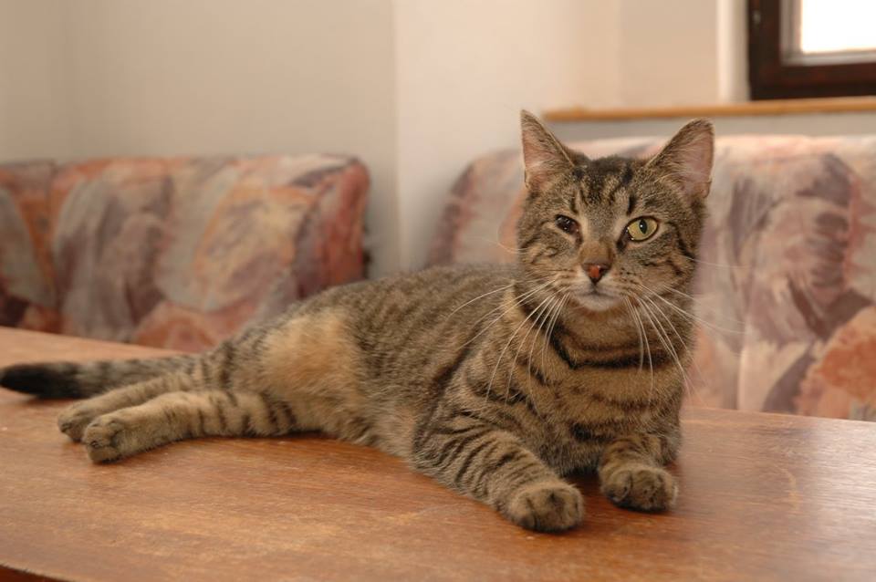 Během života venku se mu stal úraz očka, který je nevratný, takže vidí jen na to jedno zdravé.Je to velmi přítulný a mazlivý kocourek, vyžadující neustále pozornost jen pro sebe. Věk cca 3 roky, kastrovaný, očkovaný.